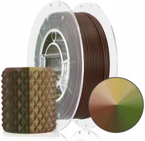 Filament ROSA 3D PLA Magic Silk Army 1,75 mm 300 g Filament 3D PLA Magic Army to trójkolorowy filament 3D inspirowany militarnymi barwami kamuflażu. Dzięki procesowi koekstruzji łączy trzy kolory w jednej nitce (ciemno zielony, brązowy oraz piaskowy beż), tworząc unikalne, „magiczne” efekty …