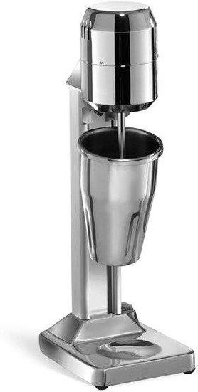 Shaker do koktajli mlecznych Hendi zaprojektowany przez holenderskiego projektanta Roberta Bronwassera. Urządzenie wyróżnia stylowa obudowa dostępna w 6 atrakcyjnych kolorach. Shaker idealnie nadaje się do przygotowywania freddo cappuccino, frappé i koktajli mlecznych. Obodowa wykonana z barwionego tworzywa ABS. We wnętrzu znajduje się mocny silnik z dwiema prędkościami pracy: 15000 i 19000 obr./min. Sterowanie odbywa się za pomocą dwubiegowego przełącznika zlokalizowanego na górze urządzenia. Spieniacz do mleka posiada wbudowany mikroprzełącznik, co zapobiega włączeniu się urządzenia w przypadku braku lub nieprawidłowego ustawienia kubka. Podstawa urządzenia została dodatkowo dociążona, aby zapewnić dodatkową stabilność i poprawić bezpieczeństwo pracy urządzenia. Gumowe nóżki urządzenia tłumią drgania i chronią powierzchnię blatu roboczego przed uszkodzeniem. Urządzenie dostarczane jest z kompletem akcesoriów, których część stanowią wymienne mieszadła. Akcesoria można myć w zmywarce. Akcesoria dołączone do zestawu: - kubek ze stali nierdzewnej o poj. 0,95 litra - kubek z poliwęglanu o poj. 0,9 litra - dwa rodzaje wymiennych mieszadeł z poliwęglanu (po 2 szt.)