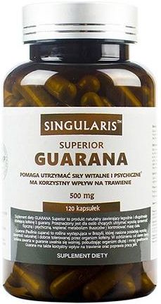 Singularis Guarana Forte 120 kapsułek Najważniejsze właściwości Singularis Guarana Forte: zawiera wysokiej jakości ekstrakt z guarany, stanowiący wysokiej jakości źródło kofeiny guarana korzystnie wpływa na sprawność umysłową [ID 2062] Paullinia guarana przyspiesza metabolizm tłuszczów [ID 2548] i …