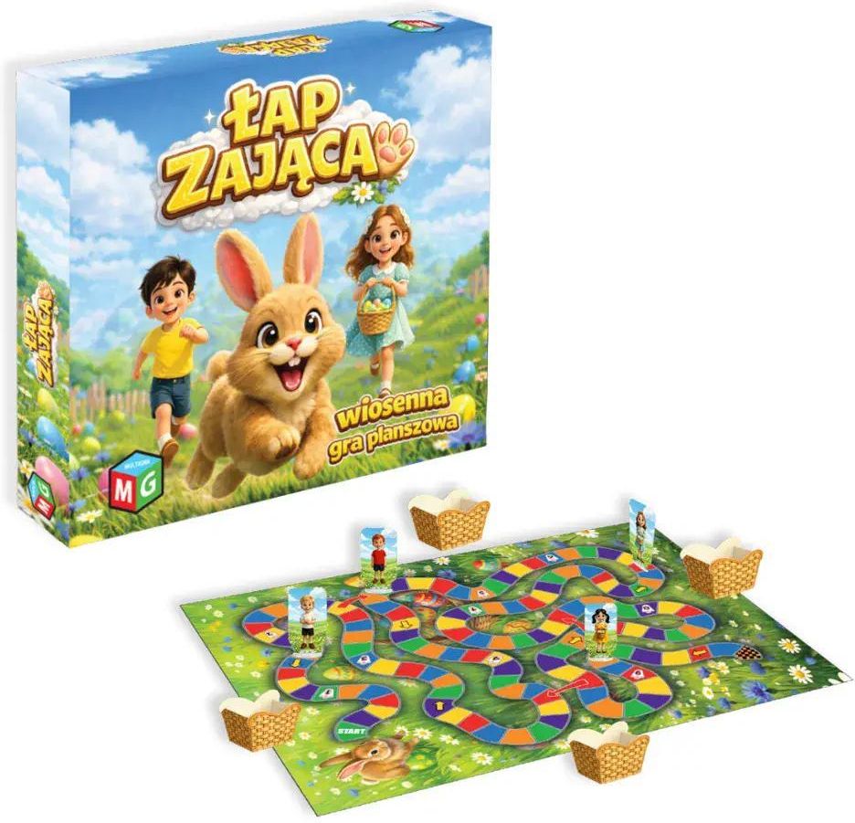„Łap Zająca”! rodzinna gra planszowa dla dzieci 4+ Szukasz pomysłu na zabawę, która naprawdę wciągnie całą rodzinę? „Łap Zająca!” to rodzinna gra planszowa dla dzieci, pełna emocji, śmiechu i zdrowej rywalizacji. Które dziecko nie czeka z ekscytacją na wielkanocny poranek w nadziei na odnalezienie prezentów pozostawionych przez Zajączka? Dzięki grze „Łap Zająca” możemy tę magiczną przygodę, przeżywać przez cały rok. Kolorowa plansza, koszyczki na prezenty i wyścig po ukryte skarby w ogrodzie sprawiają, że każda rozgrywka to nowa przygoda. Gracze rzucają kostką, przemieszczają się po planszy i zbierają żetony prezentów. Uwaga! Specjalne pola potrafią zmienić wszystko! Czasami spotkasz na swojej drodze przeszkodę, która utrudni Ci drogę do celu. Innym razem możesz zdobyć dodatkowe punkty, dzięki brawurowej akcji. Dodatkowy rzut, cofnięcie, utrata kolejki czy powrót na START podkręcają emocje do samego końca. Wygrywa ten, kto zdobędzie po drodze najwięcej prezentów takich jak: czekoladowy zając, psikawka na wodę, bierki, bańki mydlane czy piłka. Niestety można trafić także na rozgniecione czekoladowe jajo, co skutkuje utratą punktów. To idealna gra dla dzieci 4, 5, 6, 7 i 8 lat, która sprawdzi się zarówno w domu, jak i w przedszkolu, czy w świetlicy szkolnej. Dzięki specjalnej, kolorowej kostce, w grę mogą zagrać nawet młodsze dzieci, które nie potrafią jeszcze liczyć. Dlaczego warto wybrać tę grę planszową dla dziecka? Rozwija liczenie i podstawy matematyki – dziecko zdobywa punkty i uczy się prostych działań. Ćwiczy koncentrację i logiczne myślenie – planowanie ruchów i reagowanie na sytuację na planszy. Wspiera rozwój emocjonalny dziecka – nauka radzenia sobie z wygraną i przegraną. Buduje relacje rodzinne – idealna gra planszowa na wspólne popołudnia. Powtarzalność bez nudy – losowe rozłożenie żetonów sprawia, że każda rozgrywka jest inna. Idealna jako: prezent urodzinowy dla dziecka gra wielkanocna dla dzieci gra rodzinna na wieczór gra planszowa do przedszkola i domu „Łap Zająca!” to więcej niż zwykła gra planszowa dla dzieci. To mądra zabawa, która wspiera rozwój, uczy zasad fair play i zamienia zwykły wieczór w pełną śmiechu rodzinną przygodę. Gotowi na wyścig po prezenty?Zawartość opakowania Plansza Kolorowa kostka do gry Pionki – 4 szt. (dzieciaki) Podstawki pod pionki – 4 szt. Koszyczki na prezenty – 4 szt. Żetony podarunków – 28 szt. Instrukcja Wiek: 4+ Liczba graczy: 2 - 4 Kraj produkcji: PL Ostrzeżenia: Nieodpowiednie dla dzieci w wieku poniżej 3 lat. Zestaw zawiera małe elementy - niebezpieczeństwo zakrztuszenia. Producent/osoba odpowiedzialna za bezpieczeństwo produktuMultigra Sp. z o.o.Telewizyjna 13c80-209 Chwaszczynosklep@multigra.com.pl600321219