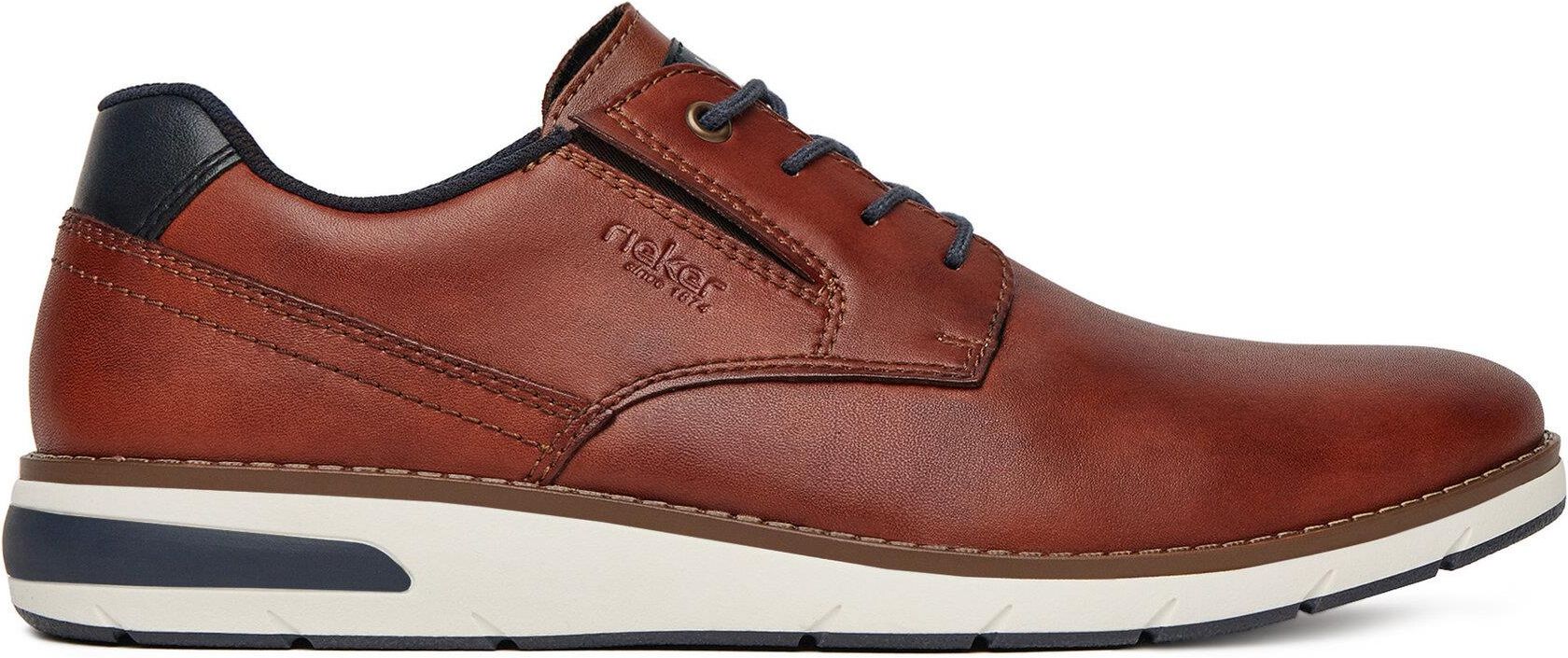 Rieker 11303 24 Brązowy Półbuty męskie Rieker 11303 24 Brązowy to istotny element codziennej garderoby, który łączy funkcjonalność z elegancją. Odpowiedni model obuwia może być kluczem do stworzenia stylizacji zarówno na formalne okazje, jak i na mniej zobowiązujące wyjścia. Dzięki różnorodności fasonów, brązowe półbuty można łatwo dopasować do różnych stylów i sytuacji. Model Rieker 11303 24 to przykładowe obuwie, które łączy komfort, estetykę i nowoczesny wygląd. Typ i materiał wykonania Brązowe półbuty wykonane są z wysokiej jakości skóry naturalnej, co zapewnia ich trwałość oraz elegancję. Klasyczny fason idealnie komponuje się z różnorodnymi stylizacjami – zarówno tymi codziennymi, jak i bardziej formalnymi. Zastosowanie skóry licowej nie tylko podnosi estetykę, ale również sprzyja oddychalności obuwia, co jest istotne w cieplejsze dni. Konstrukcja i podeszwa Model Rieker charakteryzuje się starannym wykończeniem oraz dbałością o detale. Podeszwa została zaprojektowana z myślą o elastyczności i trwałości, co czyni je zarówno stylowymi, jak i funkcjonalnymi. Płaska podeszwa zapewnia stabilność, a zastosowanie technologii Rieker Antistress zmniejsza uczucie zmęczenia stóp, co jest istotne podczas całodziennych aktywności. Antypoślizgowy materiał podeszwy zwiększa bezpieczeństwo, co jest ważne w codziennym użytkowaniu. Rodzaj zapięcia Półbuty Rieker wyposażone są w tradycyjne sznurowanie, co umożliwia idealne dopasowanie do stopy. Taki system zapięcia podkreśla elegancki charakter obuwia oraz ułatwia zakładanie i zdejmowanie. Możliwość regulacji sznurowadeł pozwala na dostosowanie ich napięcia do indywidualnych preferencji użytkownika. Wkładka wewnętrzna Wewnętrzna wkładka w tych półbutach wykonana jest z pianki Memory Foam, co zapewnia wysoki komfort noszenia. Wkładka ta dopasowuje się do kształtu stopy, co pozytywnie wpływa na wygodę użytkowania. Dodatkowo, zastosowanie materiału amortyzującego redukuje wstrząsy i odczucie zmęczenia podczas długiego dnia. Kluczowe cechy produktu Aby lepiej zrozumieć, co wyróżnia ten model, warto zwrócić uwagę na jego kluczowe cechy: Materiał: wysokiej jakości skóra naturalna, zapewniająca trwałość i elegancję. Rodzaj zapięcia: tradycyjne sznurowanie, umożliwiające idealne dopasowanie do stopy. Wkładka: amortyzująca wkładka z pianki Memory Foam dla lepszego komfortu. Technologia: Rieker Antistress, zmniejszająca uczucie zmęczenia stóp. Łatwość w czyszczeniu: skórzane materiały, które są łatwe do utrzymania w czystości. Antypoślizgowa podeszwa: zwiększająca bezpieczeństwo podczas chodzenia. Funkcje dodatkowe i wykończenia Model ten oferuje szereg funkcji, które mogą zwiększyć komfort noszenia. Oddychający materiał sprawia, że stopy pozostają świeże, nawet podczas długiego użytkowania. Detale wykończenia, takie jak ozdobne przeszycia czy subtelne perforacje, nadają obuwiu charakteru, co czyni je interesującym elementem stylizacji. Półbuty Rieker 11303 24 to obuwie, które łączy elegancję z komfortem, stanowiąc praktyczne rozwiązanie dla mężczyzn, którzy cenią sobie wysoką jakość oraz modny design.