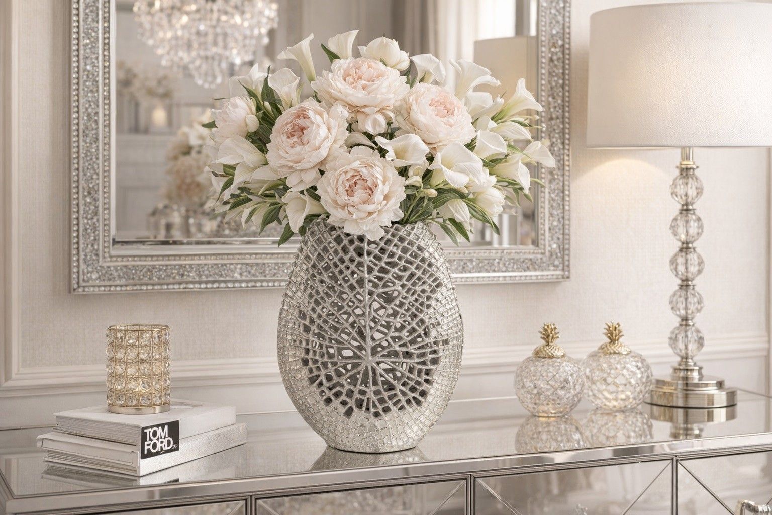 Ten ażurowy wazon Art-Pol to dekoracja, która wygląda jak metalowa koronka. Srebrny kolor pięknie odbija światło, a misterny wzór z otworami sprawia, że całość jest lekka wizualnie, choć sam wazon jest solidny i stabilny. Dzięki formie 45 x 33 x 12 cm świetnie prezentuje się na komodzie, w holu …