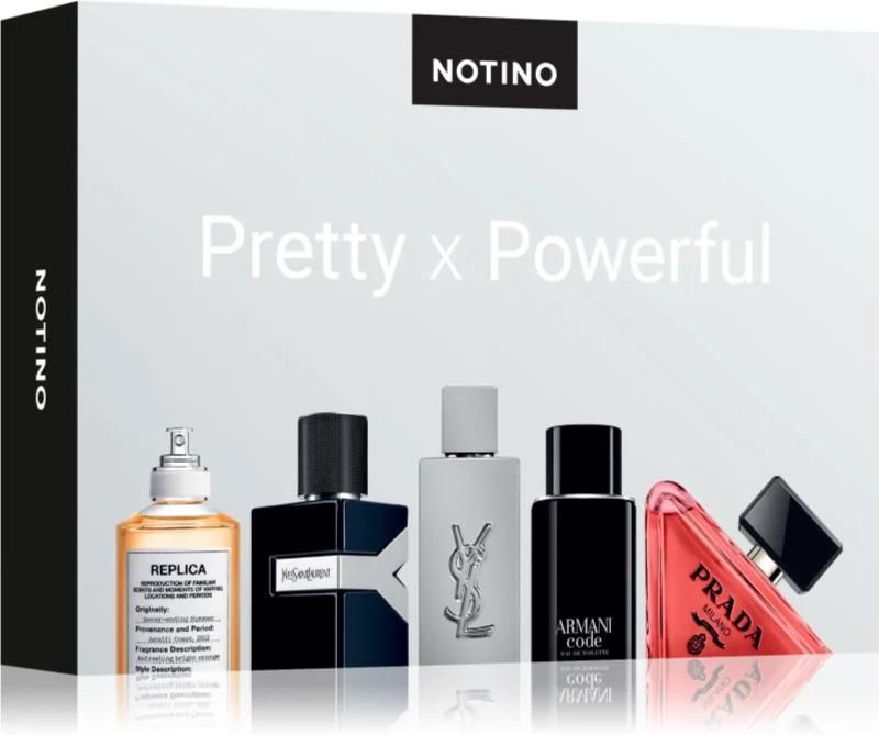 Beauty Discovery Box Notino Pretty x Powerful, , Zestawy unisex unisex, Zestaw perfum unisex Beauty Discovery Box Notino Pretty x Powerful to gwarantowany sposób na podbicie serc Twoich najbliższych. Zawiera on unikalny zapach, który zachwyca zarówno swoją wyjątkowością, jak i pięknym opakowaniem. Podaruj ten luksusowy zestaw i ciesz się radością Twoich bliskich. Właściwości: unisex – dla kobiet i mężczyzn 5 próbek zapachów Zawartość zestawu: Armani Code woda toaletowa 1,2 ml Yves Saint Laurent Y Le Parfum perfumy 1,2 ml Prada Paradoxe Radical Essence perfumy 1,2 ml Yves Saint Laurent MYSLF L'Absolu woda perfumowana 1,2 ml Maison Margiela REPLICA Never-ending Summer woda toaletowa 1,2 ml