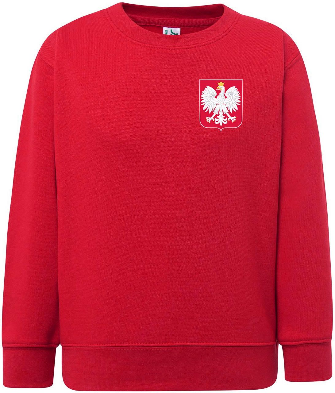WYKAZ CECH Na prodzie godło narodowe w postaci nadruku (w kolorze) Klasyczna bluza dresowa dla dzieci Okrągły dekolt wokół szyi Podwójne przeszycia ściągaczy i rękawów. Elastyczne ściągacze 2x1 rękawów i u dołu bluzy Gramatura: 290 g/m² Skład: 60% Bawełna / 40% Poliester