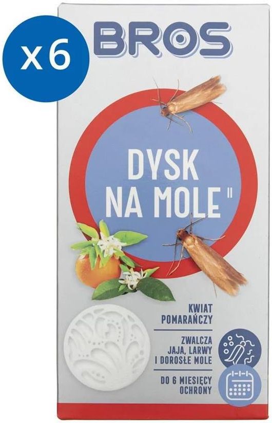 Dysk skutecznie zwalcza uciążliwe mole odzieżowe, zarówno osobniki dorosłe, jak i ich jaja, oraz larwy. Nie niszczy ubrań i mebli, nadaje delikatny zapach i chroni ubrania nawet do 6 miesięcy. Jeden dysk zabezpiecza szafę o pojemności do 1 m3. Sposób użycia: 1. Wyjąć dysk z opakowania. 2. Zapisać na nim datę wymiany. 3. Odkręcić obudowę. 4. Zerwać papier zabezpieczający taśmę samoprzylepną. 5. Przykleić w dowolnym miejscu. Bezpieczeństwo: produkt biobójczy należy używać z zachowaniem szczególnych środków ostrożności. Przed użyciem należy przeczytać etykietę i ulotkę informacyjną. Skład: substancja czynna empentryna 250 mg/szt. (6,5 g/100 g).