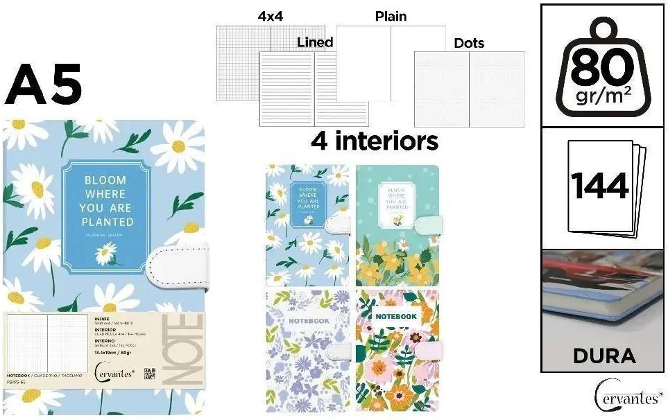 Cervantes Notatnik A5/144K Magnes Kwiaty Mix Nowe Brzesko