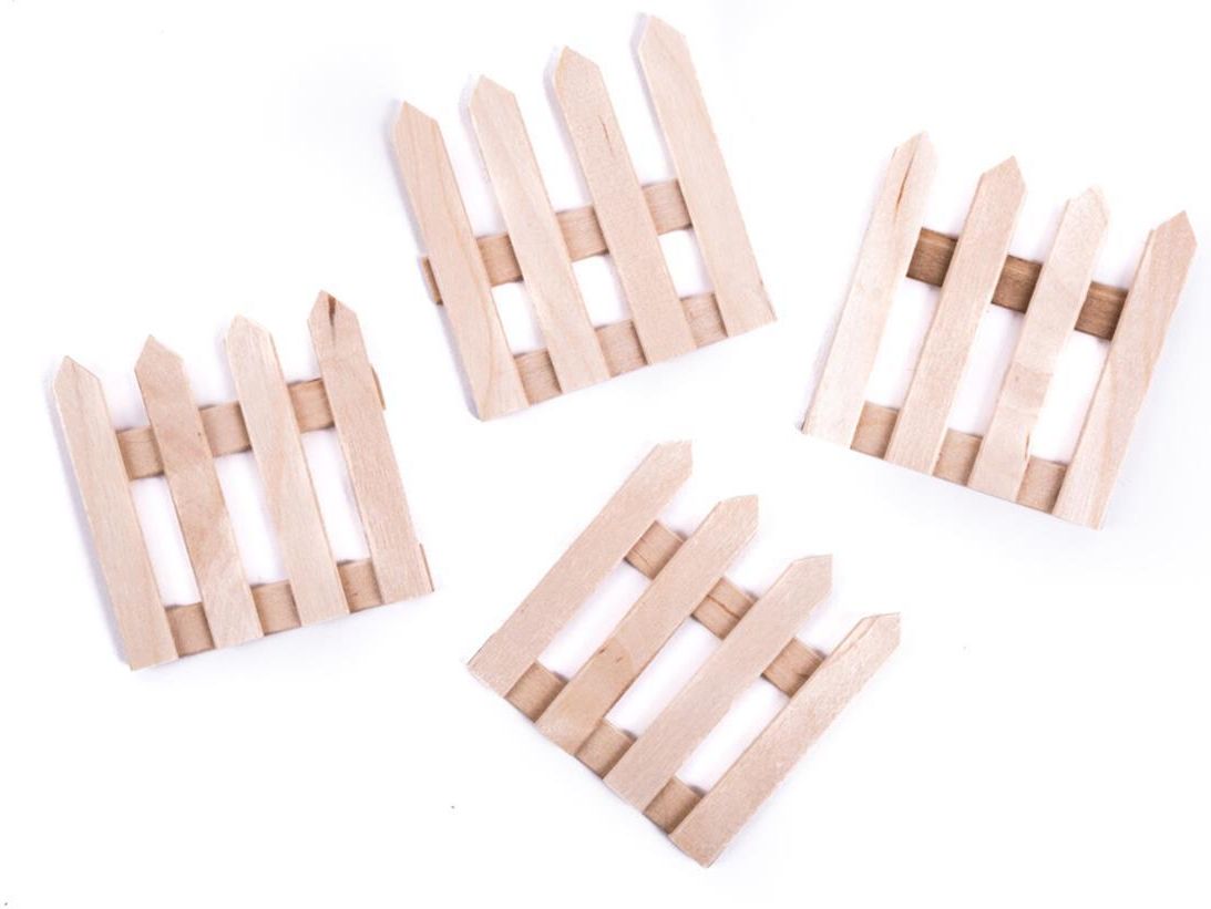 Drewniane płotki 60x62mm 4 szt, Dp Craft Płotki z drewna są doskonałym dodatkiem do projektów typu home decor. Płotki sprawdzą się zarówno w kompozycjach świątecznych, jak i całorocznych dekoracjach. Dodadzą ciekawego charakteru stroikom, miniaturowym ogrodom w słoju, kompozycjom przestrzennym w szkle, w akrylu itp. Świetne do kreatywnej twórczości dzieci, jako element zagrody albo domku z ogródkiem. Płotki można dodatkowo malować, lakierować, oklejać i ozdabiać techniką decoupage albo pozostawić w naturalnym stanie, podkreślając eko styl projektu. W opakowaniu: 4 szt. Wielkość: ok. 60 x 62 mm Kod produktu w systemie: DP Craft - _5903925002201