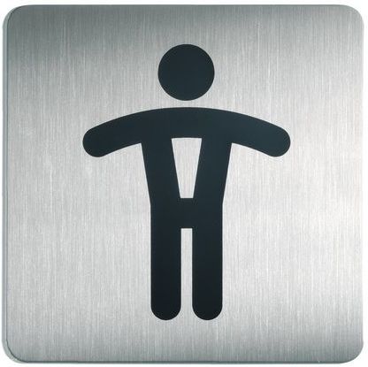 Piktogram 150x150 mm symbol: WC panowie Piktogramy czy jak kto woli -tabliczki informacyjne pokazują na pierwszy rzut oka w zrozumiały sposób, gdzie coś można znaleźć. Dzięki dobrej czytelności i zapadającym w pamięć symbolom, można je natychmiast rozpoznać i od razu wiedzieć JAK, GDZIE i CO. Elegancki piktogram DURABLE jest wykonany z wysokiej jakości stali polerowanej i pasuje do każdego stylu wyposażenia. Tabliczka informacyjnadzięki swoim rozmiarom 150x150 mm nie jest ani natrętna, ani przeoczona. Dodatkowo, znak posiada nadruk odporny na zadrapania. Wystarczy przymocować piktogram do różnych powierzchni za pomocą podkładki samoprzylepnej. Cechy produktu: wymiary: 150 x 150 mm materiał: stal polerowana symbol "WC męski" op 1 szt.