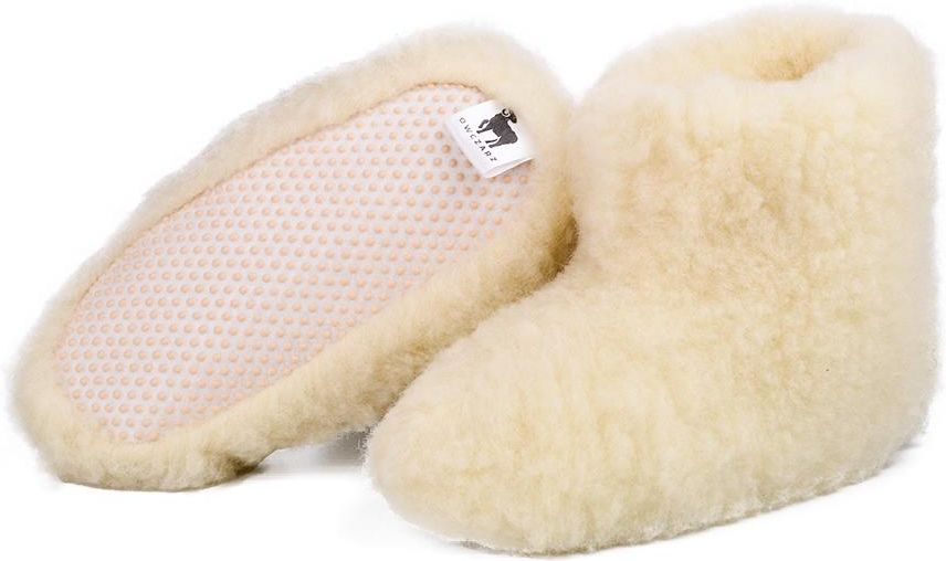 Bambosze dziecięce YETI z wełny merynoskiej Bambosze dziecięce wykonane w 100% z wełny merino to doskonały wybór dla wrażliwej skóry malucha. Naturalna wełna merino jest wyjątkowo delikatna i nie „gryzie”, dzięki czemu bambosze są przyjemne w dotyku i bezpieczne dla dziecięcych stópek. Antypoślizgowa podeszwa zapewnia stabilność i bezpieczeństwo podczas chodzenia czy zabawy na śliskich powierzchniach. Wełna merino doskonale reguluje temperaturę – ogrzewa, gdy jest chłodno, a jednocześnie odprowadza nadmiar ciepła. Co więcej, wchłania do 30% wilgoci, pozostając sucha w dotyku, więc stópki dziecka zawsze są ciepłe i suche. To naturalne, oddychające i trwałe obuwie, które otuli Twojego malucha komfortem na co dzień. Wersja dla dorosłych TUTAJ Właściwości i cechy bamboszy dla dzieci Runo wełniane nie gryzie i jest miękkie w dotyku - zapewnia to dziecku komfort noszenia przez cały dzień. Bambosze dzięki wełnie merino doskonale zatrzymują ciepło - nie musisz się martwić o zimne stopy u dziecka. Powierzchnia włókna bamboszy doskonale pobudza zakończenia nerwowe, poprawiając tym samym krążenie krwi. Wełna ma właściwości wchłaniania wilgoci, zapobiegając poceniu się stóp. Naturalne właściwości antybakteryjne wełny merino zapobiegają powstawaniu nieprzyjemnego zapachu. Bambosze wyprodukowane przez polską firmę Owczarz specjalizującą się w wyrobach z runa owczego - gwarancja dbałości o każdy detal. 100% naturalnej wełny, 100% satysfakcji klienta. F.H.U. Owczarz to polski producent wysokiej jakości wyrobów wełnianych z naturalnego runa owczego. Od początku działalności firma stawia na solidne rzemiosło, staranne wykonanie i dbałość o każdy detal, aby ich produkty odpowiadały na potrzeby klientów ceniących trwałość, komfort i estetykę. Jakość wyrobów firmy Owczarz została potwierdzona certyfikatem TEXTIL-CERT Instytutu Włókiennictwa w Łodzi (nr 347/AC 017), który potwierdza ich humanoekologiczne właściwości oraz fakt, że powstają wyłącznie ze 100% naturalnej wełny owiec merynosowych. Skład: 100% Wełna Merino, Podeszwa antypoślizgowa. Tabela rozmiarów (długość wkładki): rozmiar 24/25 - 16.5 cm rozmiar 26/27 - 17.5 cm rozmiar 28/29 - 18.0 cm rozmiar 30/31 - 18.5 cm rozmiar 32/33 - 19.5 cm rozmiar 34/35 - 20.5 cm rozmiar 35/36 - 21.5 cm