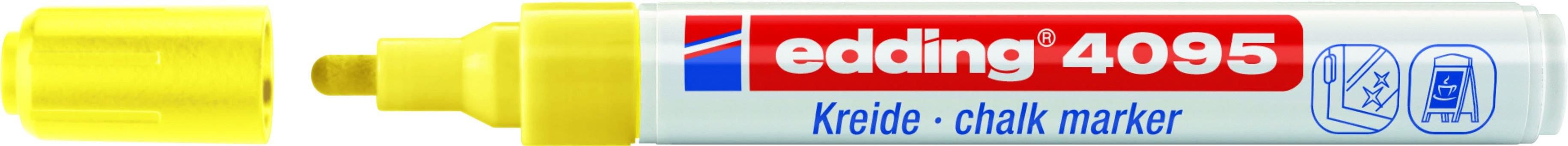 Marker kredowy Edding4095 marker na bazie matowej, płynnej kredy o neutralnym zapachu końcówka okrągła szerokość linii pisania 2-3mm do wykonywania napisów i zdobień na oknach, witrynach, ciemnych tablicach, lustrach i innych gładkich powierzchniach zmywalny przy użyciu mokrej ściereczki przepływ …