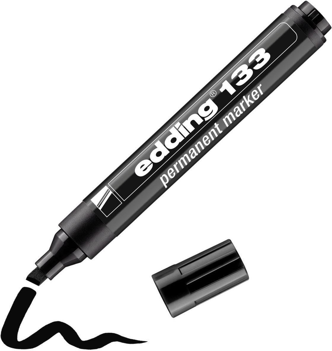MARKER PERMANENTNY E-133 EDDING, CZARNY Marker permanentny do znakowania większości materiałów, np. papieru, kartonu, metalu, plastiku i szkła Ścięta końcówka o szerokości 1-5 mm Wodoodporny na niemal każdej powierzchni Bezwonny tusz bez dodatku toulenu/ksylenu