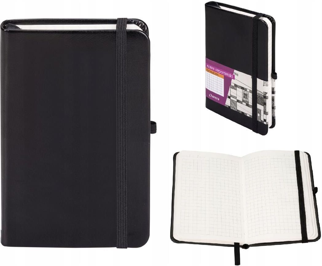 gramatura: 80 g liczba stron: 192 okładka: twarda materiał: skóra ekologiczna wymiary: 90x140 mm pionowa gumka zamykająca gumka na długopis zaokrąglone rogi wyklejka z czarnego papieru ozdobnego wnętrze: kratka koperta na luźne karteczki wstążka w kolorze okładki