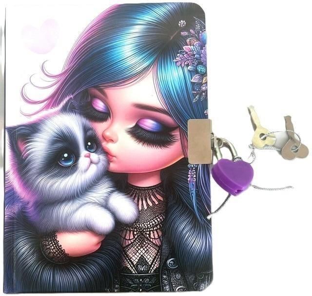 Fresh Pamiętnik Z Kłódką A6/64K Gładki Dziewczynka Z Kot Nowe Brzesko