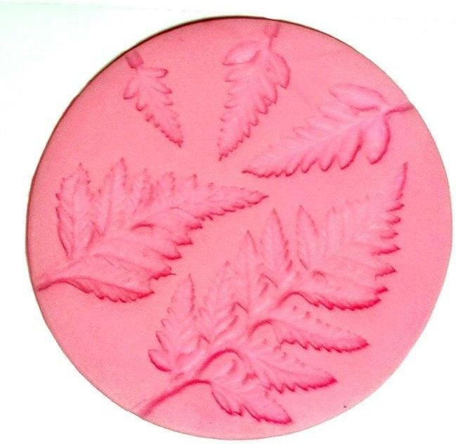 Forma silikonowa wielkości 9 cm x 9 cm do odlewów z gipsu, mas plastycznych, plasteliny, modeliny, mas cukierniczych itp.Z formy jest możliwość odlania lub stworzenia 5 elementów w kształcie gałęzi paproci. Wymiary: 150x125 mm
