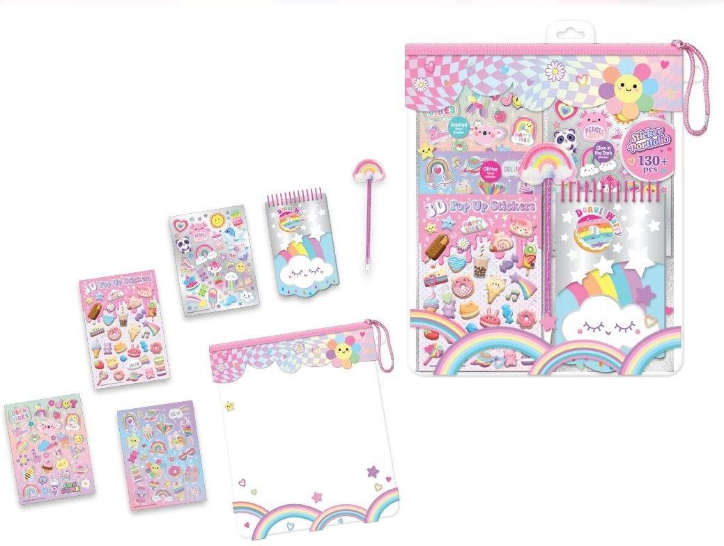 Zestaw kreatywnych naklejek z unikalnymi dodatkami Przedstawiamy mega zestaw naklejek, który przynosi mnóstwo radości zarówno dzieciom, jak i dorosłym. Wszystko jest estetycznie zapakowane w przezroczystą saszetkę, którą można z łatwością zamknąć na zamek. Wewnątrz znajdziesz: 2 arkusze kolorowych naklejek, idealne do dekoracji i twórczych zabaw, 1 arkusz specjalnych naklejek, które świecą w ciemności, nadając magiczny efekt, 1 arkusz naklejek wypukłych, zapewniających ciekawą teksturę i trójwymiarowy wygląd. W skład zestawu wchodzi również długopis z ozdobną końcówką, który zachęci do pisania i rysowania. Dołączony notes na spirali ma dwie sekcje: jedną z kolorowymi kartkami dla bardziej kreatywnych notatek, a drugą z kartkami w linie, pozwalającą na pisanie oraz organizację informacji. Zestaw jest polecany dla dzieci w wieku 5 lat i starszych, oferując im nieograniczone możliwości twórcze i świetną zabawę. EAN: 842817091921