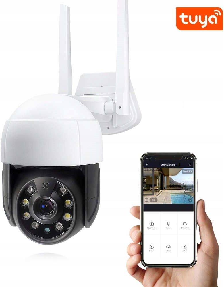 KAMERA ZEWNĘTRZNA OBROTOWA WIFI SMARTQUAL 5MPX z aplikacją TUYA SMART Chroń swoje miejsce zamieszkania i bliskich w niezwykle mądry sposób. Korzystaj z możliwości podglądu widoku z kamery na swoim telefonie komórkowym i zachowaj pełną kontrolę. ZACHOWAJ PEŁNĄ KONTROLĘ ZA SPRAWĄ SWOJEGO TELEFONU Kamera ma możliwość wysłania wiadomości alarmowej prosto na Twojego smartfona i dodatkowo zachowuje dane o aktywności odwiedzającego na karcie pamięci, dzięki czemu możesz do nich powrócić później. DARMOWA APLIKACJA TUYA SMART PO POLSKU Urządzenie działa na Wifi za pomocą aplikacji Tuya Smart, która jest w języku polskim. POŁĄCZENIE Z WIFI Kamera łączy się bez problemu z dowolnym WiFi, dzięki czemu uzyskasz dostęp do jej obrazu gdziekolwiek jesteś. Korzystając z wygodnej aplikacji, dostępnej na iOS i Android, masz możliwość podglądu kamery w czasie rzeczywistym. SŁUCHAJ I MÓW PRZEZ KAMERĘ Wbudowany, responsywny mikrofon sprawia, że możesz słuchać i komunikować się przez kamerę przy użyciu aplikacji. Możesz w ten sposób witać się ze swoimi gośćmi. Detektor ruchu jest natomiast w stanie włączyć alarm, co pozwoli pozbyć się niechcianych intruzów lub dzikich zwierząt. KONTROLUJ KAMERĘ SWOIM TELEFONEM Kamera umożliwia obrót o 355° poziomo oraz 90° pionowo, co pozwala pokryć niemalże dowolny obszar. DETEKTOR RUCHU Otrzymasz powiadomienie w swojej aplikacji, jak tylko kamera wykryje podejrzany ruch. Nikt nie będzie przebywał w Twoim domu bez Twojej wiedzy. Nie musisz również patrzeć na obraz kamery przez cały dzień! Kamera posiada funkcję podążania za człowiekiem. WODOODPORNOŚĆ Kamera jest wodoodporna, więc może zostać umieszczona na zewnątrz, gdzie będzie doskonale działała w praktycznie każdych warunkach pogodowych. ŚWIETNY OBRAZ ZA DNIA I NOCĄ Kamera posiada 4 szerokokątne lampy na podczerwień i 4 jasne czerwone lampy, dzięki czemu doskonale sprawdza się nie tylko za dnia, ale także w nocy. Wbudowany slot na kartę pamięci Obsługa kart pamięci micro SD do 128GB 8GB - około 2 dni 16 GB - około 4-5 dni 32GB - około 8-10 dni 64GB - około 18-20 dni 128GB - około 36-40 dni Mikrofon Diody podczerwieni Białe diody Obiektyw Czujnik światła Slot na kartę pamięci micro SD Głośnik Specyfikacja: Materiał: tworzywo ABS Możliwość nagrywania 24/7 Wspiera karty micro SD o pojemności nawet 128 GB (nie dołączono do zestawu) Wysoka rozdzielczość: 1920x1080 (Full-HD) 5MPX Działanie na podczerwień: Tak, do 30m Obrót o 355° poziomo oraz 90° pionowo Wbudowany mikrofon i głośnik - dwustronny przesył audio Napięcie wejściowe: DC12V 2A Wifi: 802.11b/g/n, 2.4Ghz Aplikacja: Tuya Smart po polsku Wodoodporność: IP66 Kolor: czarny W zestawie: kamera zasilacz 12V 2A zestaw montażowy instrukcja obsługi oryginalne pudełko