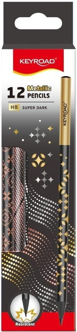 ołówek KEYROAD wykonany z czarnego drewna z ciemnym grafitem doskonały wybór dla osób ceniących elegancję i jakość modne, holograficzne wzory metaliczne miękkie i trwałe, łatwe do ostrzenia, zapewniające komfort użytkowania wstępnie naostrzona końcówka twardość: HB zestaw 12 szt.
