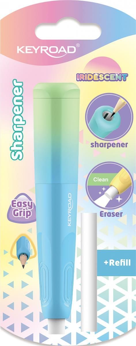plastikowa temperówka KEYROAD z opalizującą obudową mieniącą się różnorodnymi odcieniami idealna do szkoły i do domowego użytku ergonomiczny kształt ułatwia pewne trzymanie i precyzyjne ostrzenie pojedyncza, odpowiednia do standardowych ołówków i kredek posiada wbudowaną gumkę umożliwiającą …