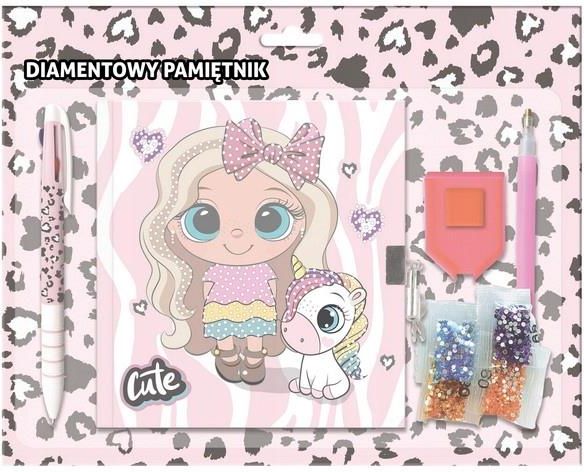 Oferujemy Państwu produkt: Diamentowy pamiętnik z kłódką + długopis 3 kolorowy Best Friends Producent: DERFORM Kod produktu: DPKD3KBF10 Opis produktu: Zestaw składa się z pamiętnika, długopisu 3 kolorowego (czarny, czerwony, niebieski), plastikowego rylca do nakładania diamentów, wosku, tacki oraz ponad 500 diamentów w 5 różnych kolorach. Poszczególne elementy okładki mogą zostać samodzielnie ozdobione diamentami. Pamiętnik posiada kłódkę oraz 60 zadrukowanych kartek. Galeria zdjęć