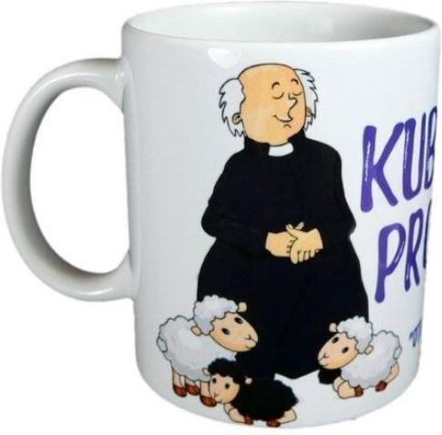 Kubek w kolorze białym z kolorowym nadrukiem. Napis: Kubek proboszcza, "Oto sługa mój, którego wybrałem..." Kubek nadaje się do mycia w zmywarkach. Materiał: ceramika Wysokość: 95 mm Średnica górna/dolna: 80/80 mm
