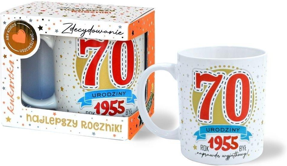 Kubek na 70 Urodziny Rocznik 1955 Kubki z serii Roczniki to idealny pomysł na prezent - wzory są oryginalne, zdobione złotem i pakowane w piękne pudełeczko. Na kubkach znajdują się ciekawe wydarzenia z danego roku. Cechy produktu Materiał: Porcelana Pojemność: 300ml Opakowanie: Ozdobny kartonik Okazja: 70 urodziny Producent: Kukartka Dalczego wartyo wybrać produkty firmy Kukartka? Polska marka z sercem: Kukartka to w 100% polska firma, która od ponad 30 lat tworzy wyjątkowe kartki i upominki z myślą o emocjach i relacjach – wspierając lokalną gospodarkę i miejsca pracy. Unikalny design i wysoka jakość: Wszystkie projekty powstają w autorskim studiu graficznym w Polsce, dzięki czemu produkty są oryginalne, dopracowane i estetyczne – idealne na prezent. Szeroka oferta na każdą okazję: Od kartek okolicznościowych po czekolady, kubki i kalendarze – Kukartka oferuje piękne, gotowe upominki, które sprawiają radość i mają „to coś”.