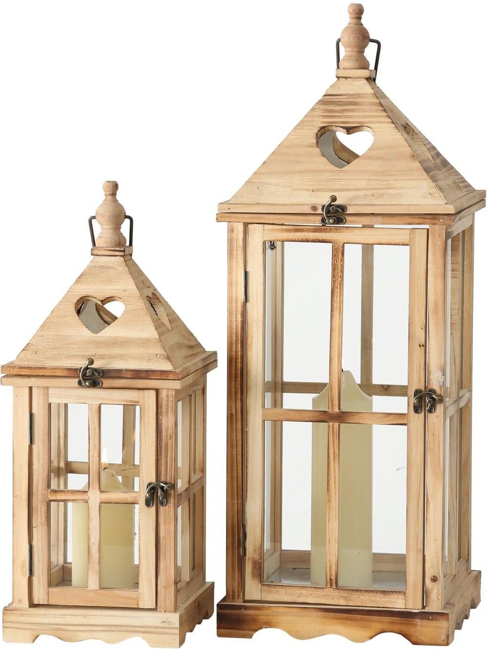 Latarnia skandynawska drewniana LENNIS- zestaw 2 sztuki. Wymiary: Rozmiar L 20 x 20 x 50 cm Rozmiar XL 26 x 26 x 70 cm