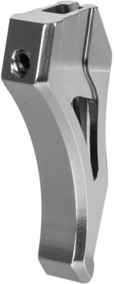 Wymienna końcówka języka spustowego do systemu języków spustowych Epsilon . Dzięki wykonaniu końcówki z aluminium cechuje się ona niską wagą i dużą wytrzymałością. Spusty Epsilon pozwalają na zmianę końcówki języka spustowego bez konieczności rozbierania gearboxa. Język spustowy w kolorze srebrnym. Dane techniczne Przeznaczenie: system Epsilon Materiał: aluminium Waga: 5 g Producent : LayLax