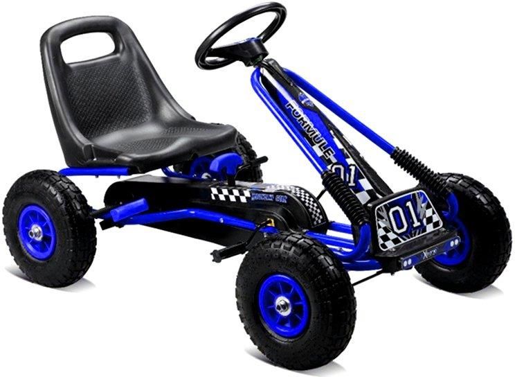 Gokart Na Pedały Niebieski A-15 Pompowane Koła Spraw by Twoje dziecko poczuło się jak prawdziwy kierowca rajdowy i świetnie bawiło się na świeżym powietrzu!! Pojazd dla dzieci lubiących szybką jazdę. Rozwija kondycję fizyczną już od najmłodszych lat! WYPOSAŻENIE GOKARTA: Ręczny hamulec na oba tylne …