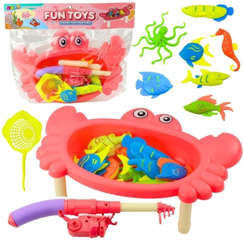 ZESTAW DO ŁOWIENIA RYBEK - STOLIK KRAB RÓŻOWY Zestaw do łowienia rybek w stoliku w kształcie kraba to wspaniała propozycja zabawy dla dzieci, które uwielbiają wodne przygody i aktywności rozwijające zręczność. Dzięki temu kolorowemu zestawowi maluchy mogą poczuć się jak prawdziwi wędkarze, trenując cierpliwość, refleks i koordynację ruchową. W komplecie znajduje się stolik w kształcie sympatycznego kraba z czterema stabilnymi nóżkami, wędka, sitko oraz aż 10 kolorowych rybek i morskich stworzeń do łowienia. Całość wykonano z bezpiecznych i trwałych materiałów, dzięki czemu zabawka zapewnia długie i bezpieczne użytkowanie. Zestaw świetnie sprawdzi się zarówno podczas zabawy w domu, jak i na świeżym powietrzu. To doskonały pomysł na prezent dla każdego dziecka, które kocha wodne atrakcje i zabawy zręcznościowe. SPECYFIKACJA Wymiary stolika: 37 x 25 x 8,5 cm Wymiary opakowania: ok. 42,5 x 34 x 10 cm Kolor: różowy (krab) Materiał: wysokiej jakości tworzywo sztuczne ZAWARTOŚĆ ZESTAWU Stolik w kształcie kraba (z 4 nóżkami) 10 kolorowych rybek i morskich stworzeń Wędka Sitko Informacje o produkcie Certyfikat CE, EN71 Ostrzeżenie! Nieodpowiednie dla dzieci w wieku poniżej 3 lat Płeć Uniseks Wiek +3 Długość towaru w centymetrach 34 Wysokość towaru w centymetrach 43 Szerokość towaru w centymetrach 10 Waga gabarytowa w gramach 2436.67