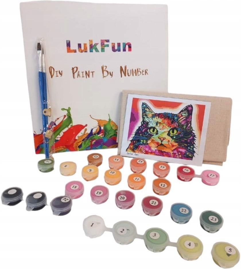 Obraz Malowanie według numerów Kot 40-50cm AAMAZON Towar powystawowy, outletowy, stoki magazynowe. Urządzenia mogą posiadać opakowania zastępcze lub oryginalne. Zestaw do malowania według numerów LukFun to prosta zabawa i bezstresowe zajęcie dla Ciebie!Odkryj swój potencjał twórczy i baw się dobrze podczas malowania. Stwórz własne magiczne arcydzieło! Ten zestaw PBN jest odpowiedni dla dzieci i dorosłych w wieku powyżej 8 lat. Dzieci potrzebują opieki dorosłych. RELAKS I ZABAWA: obraz olejny to doskonały wybór do łagodzenia stresu, depresji i niepokoju. Malowanie według numerów dla dorosłych i dzieci to rozrywka dla całej rodziny.ŁATWA OBSŁUGA: Postępuj zgodnie z numerami wydrukowanymi na płótnie, co odpowiada numerom oznaczonym na zestawie farb. Nie wymaga mieszania kolorów.Możesz malować według numerów w kolejności (1,2,3...) lub od małych obszarów do dużych obszarów. Możesz nawet mieszać farby, aby uzyskać dowolny oczekiwany kolor.PROFESJONALNY ZESTAW DO MALARSTWA: wstępnie zadrukowane płótno (bez ramy, złożone w pudełku), bezpieczne farby akrylowe, 3 rozmiary pędzli. Specyfikacja: Marka: LukFunPaczka zawiera:1 szt. 40x50 cm wstępnie zadrukowane płótno o wysokiej rozdzielczości (bez ramki).1 zestaw farb akrylowych.2 szt. Pędzle różnej wielkości. Uwaga: płótno nie rozciąga się na desce i bez ramy.