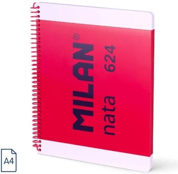 Zeszyt notes z metalową spiralą z zamknięciem w systemie coil-lock zapobiegającym zaczepianiu się o odzież lub zarysowaniom mebli. Papier A4 gładki, 80 kartek. Kolor różowy. Sztywna kartonowa okładka w dwóch różnych wykończeniach - błyszczącym i matowym. Wysokiej jakości papier o gramaturze 95 gr/m2, z mikroperforacją oraz z 4 otworami. Rozcięcie przy perforacji ułatwiające rozdzielenie każdego arkusza. Kolekcja MILAN nata(R) 624 inspirowana jest oryginalną kolorystyką i designem gumek MILAN produkowanych w Hiszpanii od 1918 roku. Wymiar: 29,5 x 24 x 2 cm 0,74 kg.EAN: 8411574110002Producent: MILANWymiary: 298x240 mm