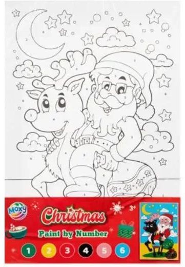 Wprowadź świąteczną atmosferę do swojego domu dzięki zestawowi malowania po numerach na płótnie A4. Obrazek przedstawia wesoły, bożonarodzeniowy motyw Mikołaja z reniferem. Płótno podzielone jest na pola oznaczone numerami, które odpowiadają konkretnym kolorom farb, dzięki czemu malowanie jest proste i daje piękne efekty nawet początkującym artystom. EAN: 8715427133799