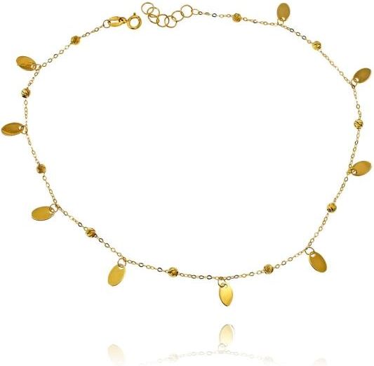 Modna Złota Efektowna Bransoletka na Nogę ! Próba 585 Waga - 1,42 g. Długość 23,5 cm. z regulacją łańcuszkową do 25,5 cm. Szerokość - bransoletka - 0,1 cm. blaszki na bransoletce - 0,6 cm KOLOR ZŁOTA ŻÓŁTY KUPUJĄC BIŻUTERIĘ U MNIE OTRZYMUJĄ PAŃSTWO !!! ✅ Towar Zgodny z Najwyższą Sztuką Jubilerską …