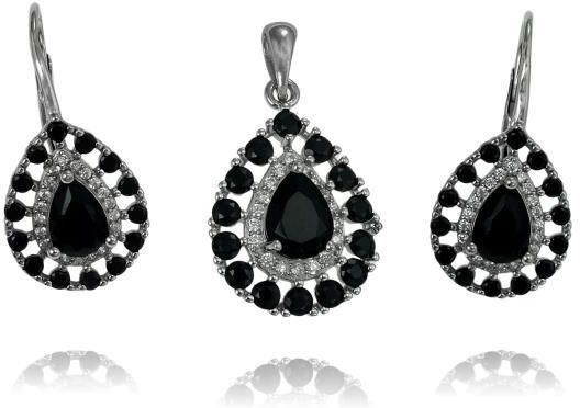 Norbisrebro Piękny Srebrny Komplet Z Czarnymi Cyrkoniami Cyrkonią Nowe Brzesko