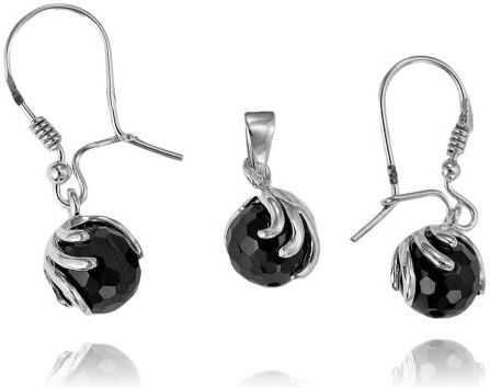 NORBISREBRO SREBRNY DELIKATNY KOMPLET Z CZARNYM PIRYTEM Nowe Brzesko