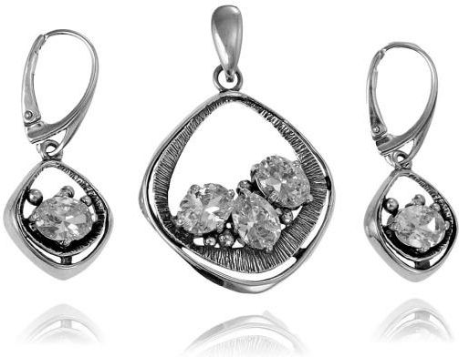NORBISREBRO SREBRNY OKSYDOWANY EFEKTOWNY KOMPLET Z CYRKONIAMI ! Nowe Brzesko