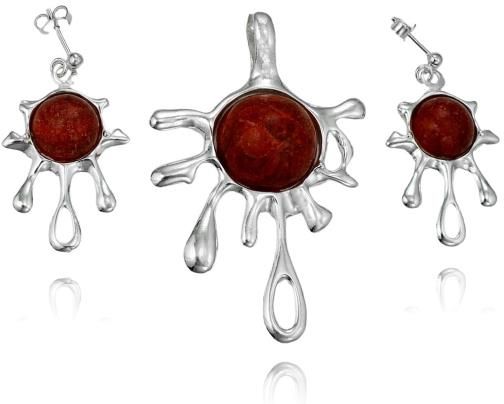 Norbisrebro Srebrny Oksydowany Komplet Z Koralem Nowe Brzesko
