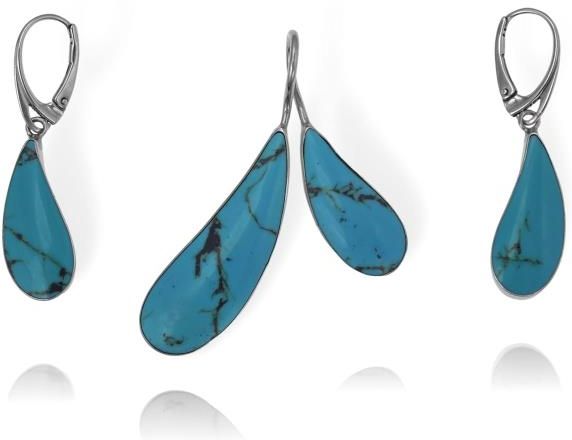 Norbisrebro Srebrny Piękny Komplet z Turkusem (IDKOMPLET120824A) Nowe Brzesko