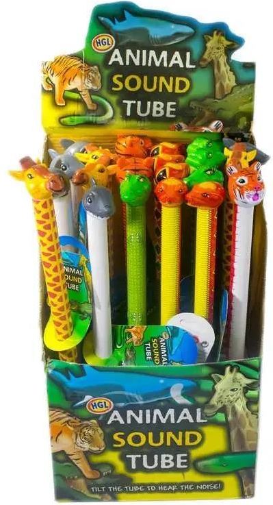 Zabawka tubowa zwieńczona głową zwierzątka. Tubę należy trzymać pionowo w dół, a następnie obrócić o 180 stopni. Po obrocie tuba przez jakiś czas wydaje z siebie bardzo zróżnicowane i zabawne dźwięki. Gdy dźwięk ustaje wystarczy tubę ponownie odwrócić o 180 stopni. Pięć różnych wzorów zwierząt, w tym rekin, krokodyl, tygrys, żyrafa i wąż. Wymiary: 34x428 mm