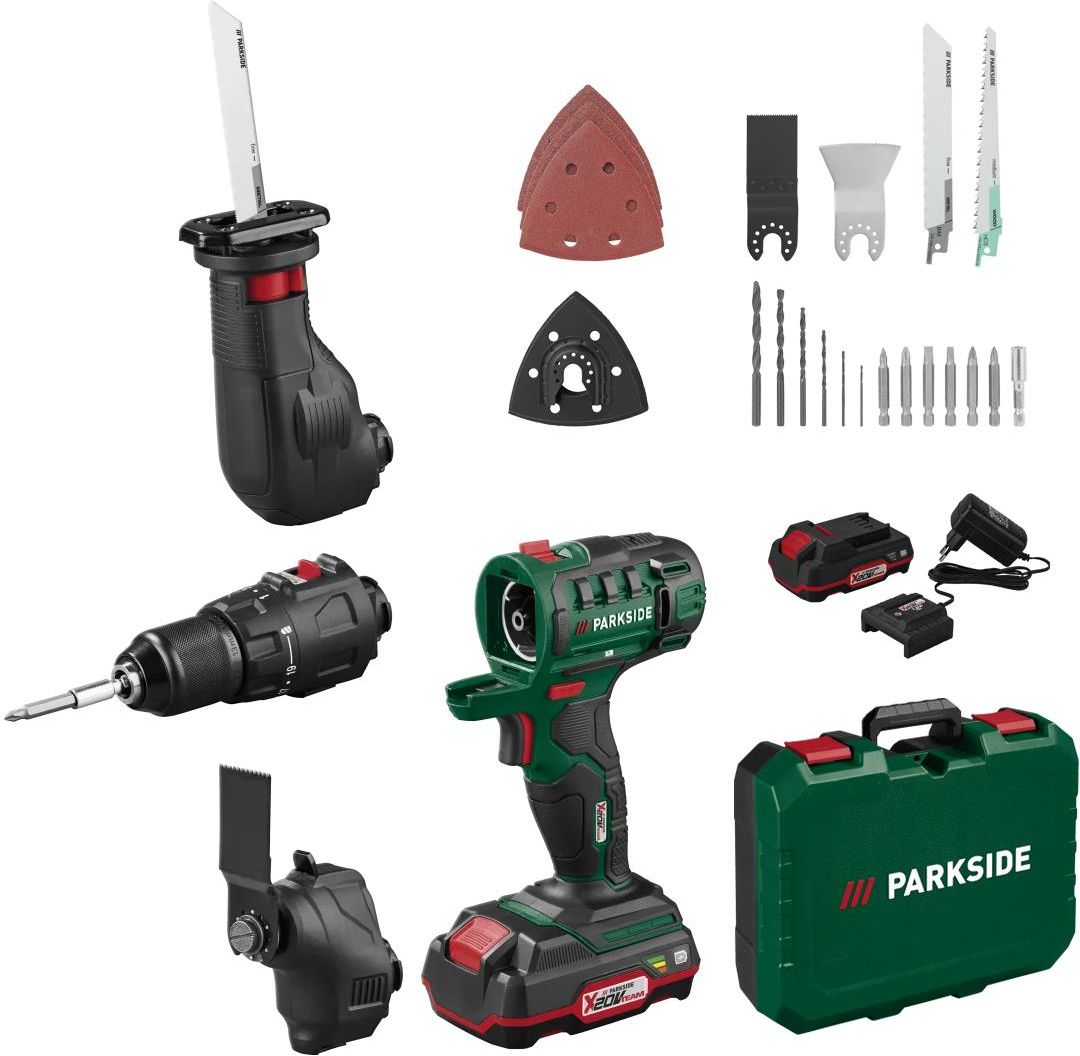 ✅Urządzenie Parkside PKGA 20 Li-C2 ✅1x Akumulator ✅1x Ładowarka ✅1x Końcówka wiertarko-wkrętarki : 6 wierteł (1,5 / 2 / 3 / 4 / 5 / 6 mm) ✅6x bity (50 mm) ✅1x przedłużka do bitów (50 mm) ✅1x Końcówka piły szablastej: (1 do drewna / 1 do metalu) ✅1x Końcówka narzędzia wielofunkcyjnego: (1x brzeszczot zanurzeniowy do drewna / tworzywa sztucznego / płyt gipsowo-kartonowych) ✅1x skrobak ✅1x trójkątna płytka szlifierska ✅3x arkusze ścierne (gradacja 60 / 80 / 120) do drewna ✅Walizka transportowa