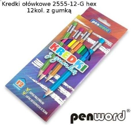Penword Kredki Ołówkowe 12 Kolorów Z Gumką 2555-12-G Hex Nowe Brzesko