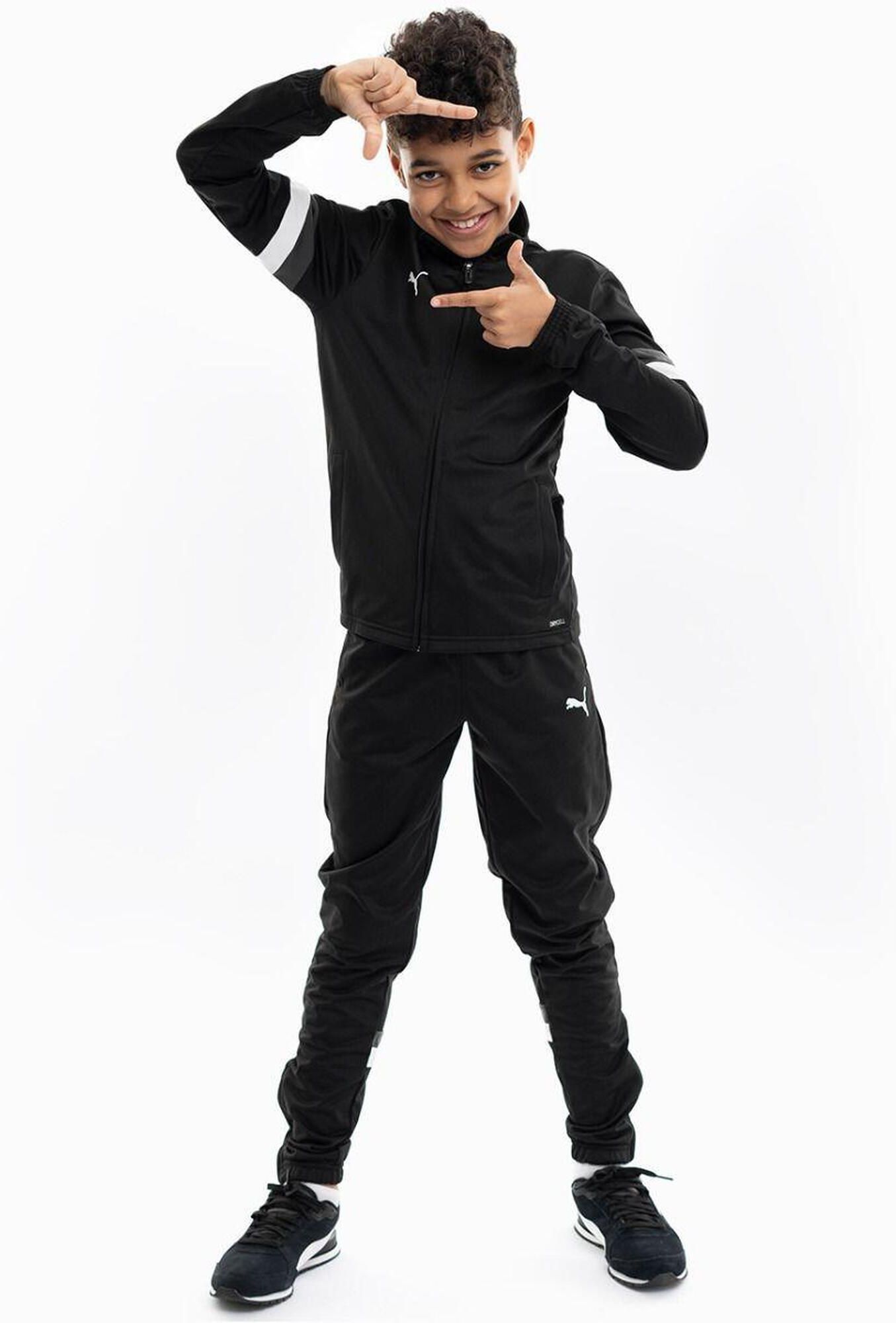 Dres dla dzieci Puma Team Rise czarny 658655 03 > Dres dziecięcy Puma sprawdzi się podczas treningów. Regularny krój. Szybkoschnący materiał z technologią DryCell. Bluza z zamkiem na całej długości i stójką. Rękawy z elastyczną lamówką. Spodnie z elastyczną talią. Mankiety nogawek wykończone delikatnym ściągaczami i zamkami. Bluza zyskała otwarte kieszenie boczne. Logo Puma z nadrukiem termicznym po prawej stronie klatki piersiowej i na lewej nogawce. > Materiał: 100% poliester > >