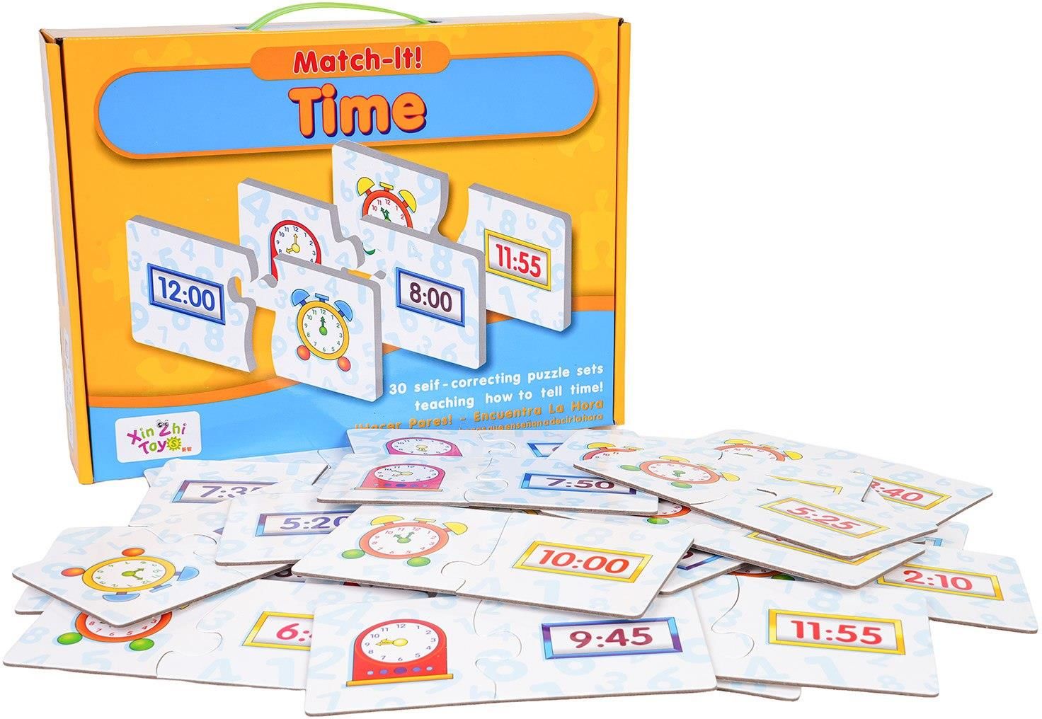 Opis Karty Edukacyjne ZEGAR Gra edukacyjna z nauką zegara dla dzieci od trzeciego roku życia. Gra składa się z 60 puzzli, dzięki którym dziecko poznaje czas i uczy się dopasowywać kształty. Gra trenuje również koordynację ręka-oko, rozwija spostrzegawczość i koncentrację. Z jednej strony mamy rysunek zegara, a z drugiej czas zapisany w formie cyfrowej. Dziecko musi dopasować jeden element do drugiego. Gra idealnie łączy w sobie naukę i zabawę. Funkcje gry: odpowiednia dla dzieci powyżej trzeciego roku życia, 60 elementów, możemy ułożyć 30 plansz, solidne wykonanie, w żywych kolorach, uczy koncentracji, uczą dopasowywać kształty, korzystnie wpływają, ma naszą pamięć wzrokową, uczy rozpoznawać czas. Wymiary - karta ok. 15 cm x 8 cm, - opakowanie ok. 28 cm x 21,3 cm x 6 cm. Zawartość zestawu - 60 elementów (puzzli)
