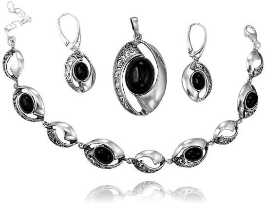 Srebrny Oksydowany Komplet z Onyksami Onyksem Nowe Brzesko