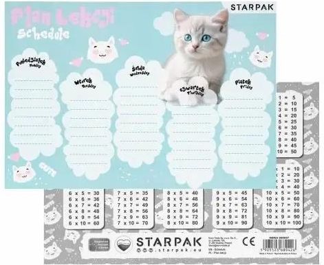 Starpak Plan Lekcji Z Tabliczką Mnożenia Kotki 2 25Szt Nowe Brzesko