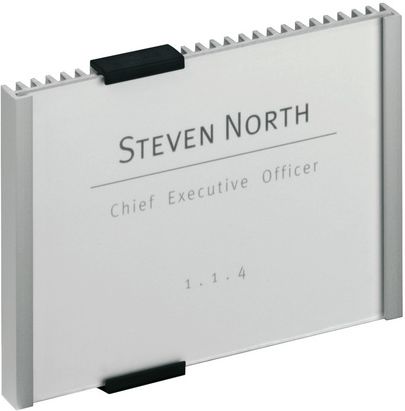 TABLICZKA NA DRZWI INFO SIGN Tabliczki na drzwi lub ścianę Info Sign świetnie sprawdzą się tam gdzie chcemy oznakować przestrzeń. Info Sign z żebrowanym wyglądem i odsuniętymi nakładkami montażowymi. Grzbiet aluminiowy może być przyklejony lub przykręcony do danego przedmiotu. Wkładka posiada antyrefleksyjną płytę akrylową, która nie odbija światła. Tabliczka na drzwi idealnie nadaje się do zastosowania w biurach, lobby, hotelach, salach konferencyjnych oraz wielu innych reprezentacyjnych pomieszczeniach. Wysokiej jakości panel akrylowy mocowany jest za pomocą dwóch nakładek, a wymiana wkładów jest szybka i prosta. Wystarczy tylko wysunąć panel akrylowy i wsunąć wkład. Do każdej tabliczki dołączona jest instrukcja obsługi oraz śruby i paski samoprzylepne . Dodawany jest także szablon do wiercenia otworów w ścianie. Program do opisu wkładów dostępny na www.durable.pl, wkłady we wszystkich rozmiarach można opisać przy pomocy programu, dostępnego na www.durable.pl CECHY PRODUKTU: tabliczka informacyjna profesjonalna prezentacja informacji kolor: srebrny metalik wymiary: 149x105,5 mm op. 1 szt