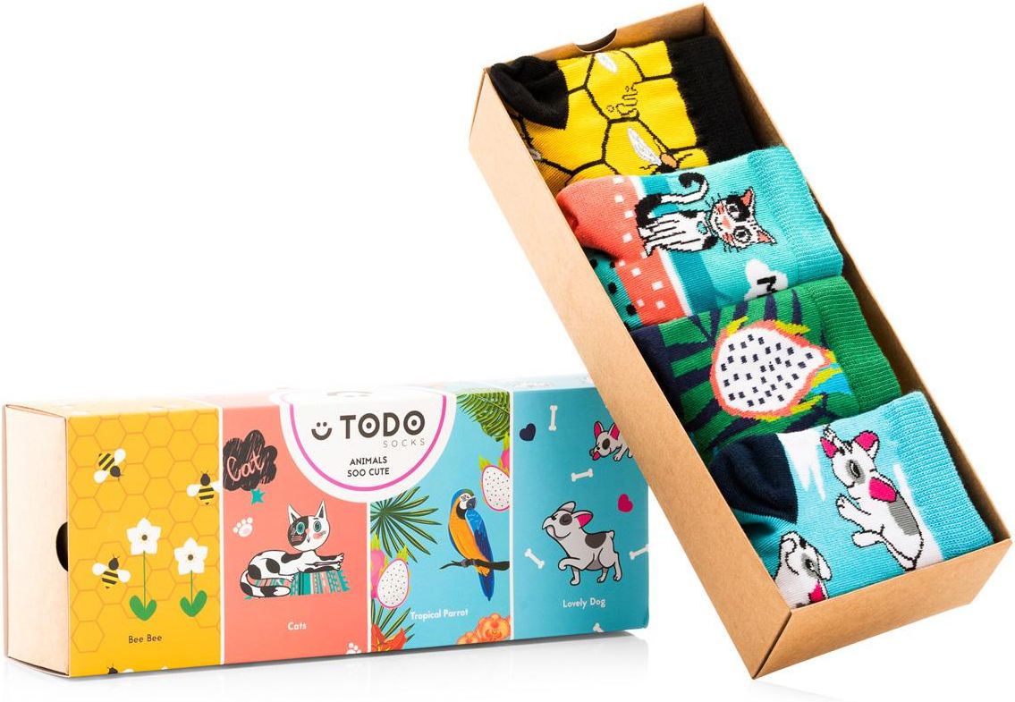 Todo Socks Zestaw Dziecięcych Skarpet Animals Soo Cute - Pszczoły, Koty, Papugi, Pieski - 4 Pary Nowe Brzesko