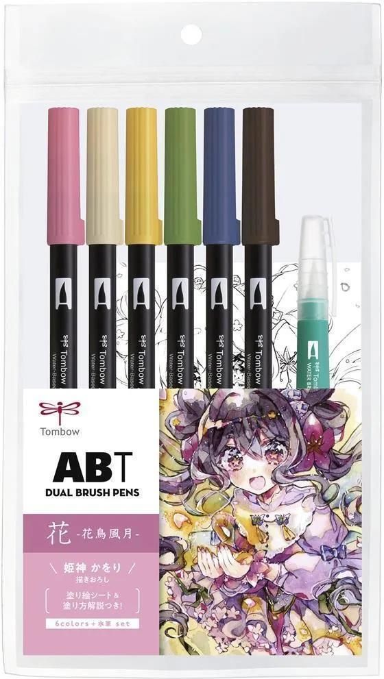 Tombow Zestaw Manga Flower 6 X Abt + Wodny Pędzel Nowe Brzesko