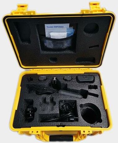 Twardy kufer na kontroler TSC7 i akcesoria. Kufer zawiera miejsca na: Kontroler TSC7, uchwyt na tyczkę, kabel zasilający, ładowarka dwustanowiskowa i 2 zapasowe baterie Pryzmat Trimble 360 (MT1000, AT360, R10 360 lub VX i SSeries360) 1 x bateria odbiornika MT1000 / R-Series 2 x akumulatory tachimetru 2 x miejsce na zapasową antenę