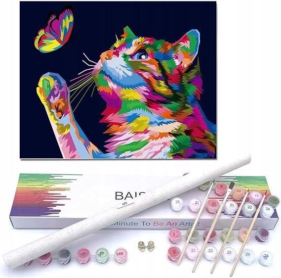 Malowanie po numerach na płótnie bez ramki kot AAMAZON Produkt fabrycznie nowy, nieużywany w oryginalnym opakowaniu. Malowanie po numerach na płótnie bez ramki obraz kot zestaw 40x50 cm Zestaw do malowania z numerami DIY: 40 x 50 cm 1 sztuka wstępnie zadrukowanego teksturowanego płótna (bez ramki), …